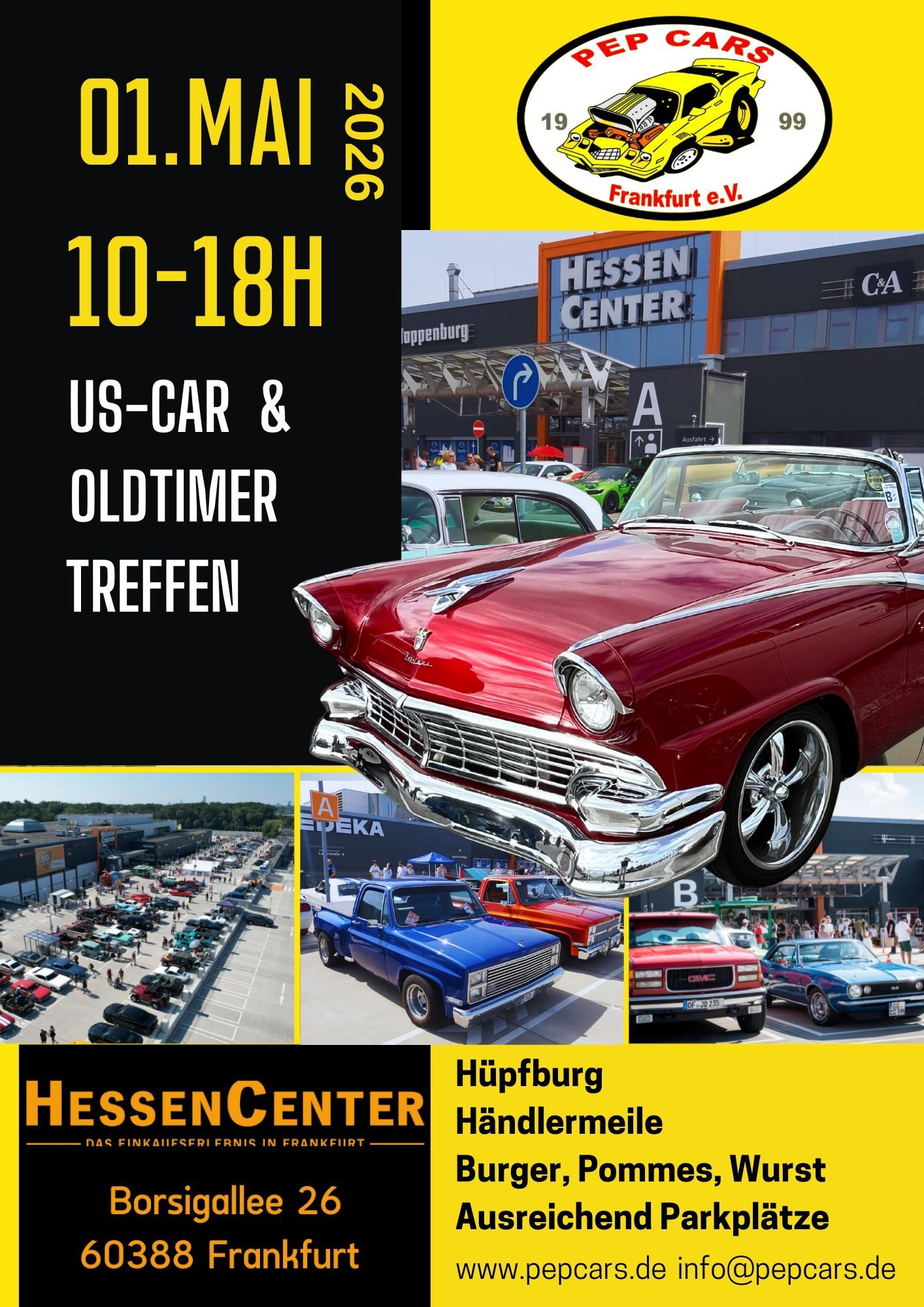 Der Club veranstaltet jedes Jahr am 1.Mai und im Herbst je ein US-Car & Oldtimer Treffen in Frankfurt Bergen-Enkheim im Hessen-Center.